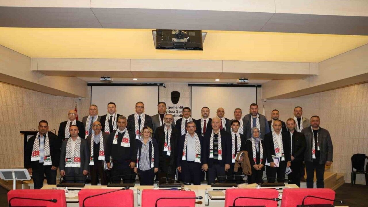 Şehzadeler Belediye Meclisi 2023 yılının son toplantısını Belediye Başkanı Ömer Faruk Çelik başkanlığında gerçekleştirdi. Meclis, şehitler için saygı duruşunda bulunulup ardından İstiklal Marşı okunmasıyla başladı. Daha sonra Belediye Başkanı Çelik, meclis üyeleri ve belediye personelinin boyunlarına üzerinde Türk ve Filistin bayraklarının yer aldığı atkılar taktı. Meclisin açılış konuşmasını yapan Başkan Çelik, taktıkları atkıların bir duruşun göstergesi olduğunu ifade ederek, "Siyonist katil İsrail devleti Filistin’de, Gazze’de bir insanlık suçu işlemekte, bu çağda bir soykırıma imza atmaktadır. Binlerce kadın, çocuk, masum insan İsrail tarafından soykırıma tabi tutulmaktadır. Biz bunu lanetliyor, kınıyoruz. Bu noktada da Şehzadeler Belediyesinin meclis üyeleri ve mesai arkadaşlarımız olarak mazlum Filistin halkının yanında olduğumuzu, katil soykırımcı İsrail’e karşı olduğumuzu bir kez daha ilan etmek için bugün böyle bir eylemi icra ediyoruz. Allah şehitlerimize rahmet eylesin. Bizim inancımıza göre zulüm ile abad olunmaz. Zulmün sürekliliği olmaz. Zalimler zulümlerinde boğulacaklardır. Bu zulüm devam etmeyecektir biz buna inanıyoruz. Çok şükür ki dünya kamuoyunda Filistin halkının yanında dik bir şekilde duran bir milletin mensuplarıyız. Tüm duamız ve temennimiz bu alçak saldırıların bir an önce durdurulması ve bağımsız Filistin devletinin hayata geçirilmesidir" dedi.