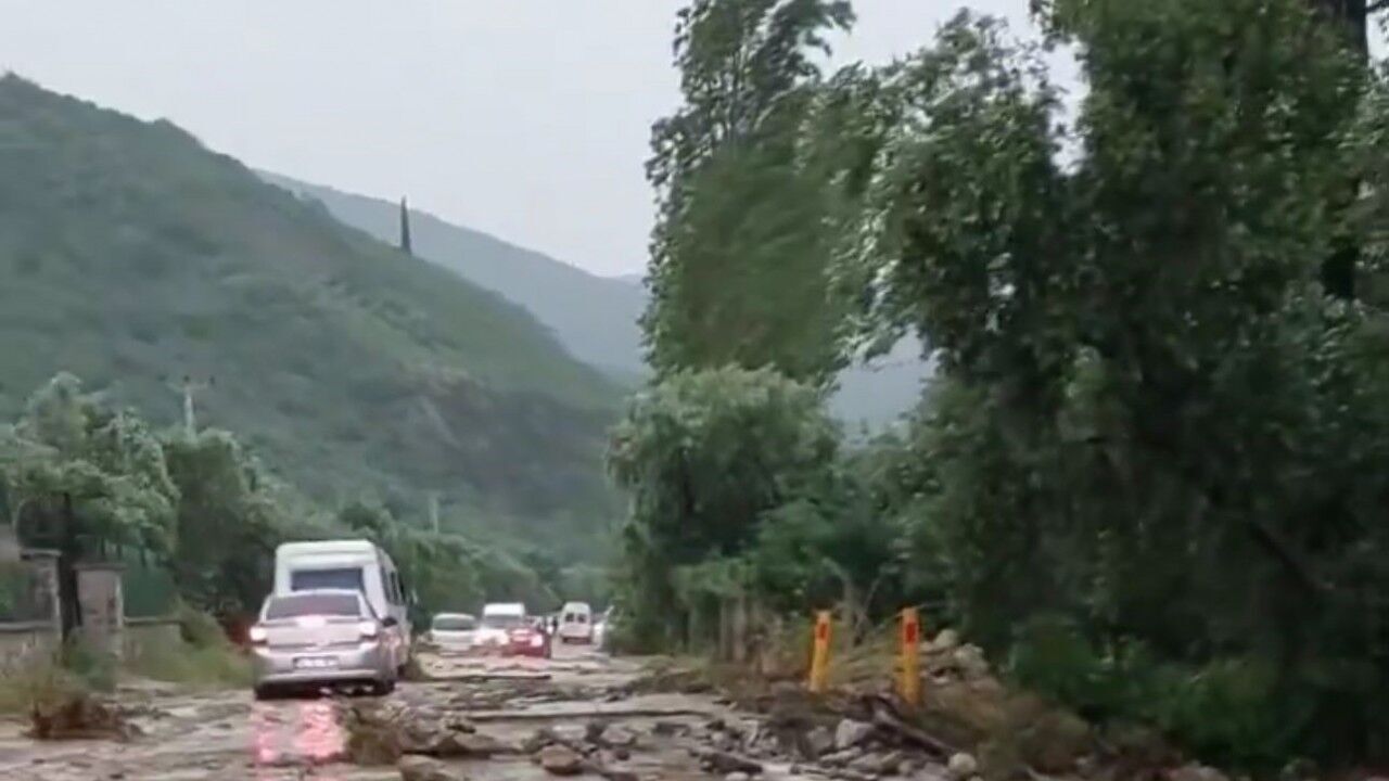 Bursa’nın İznik ilçesinde etkili olan sel ve sağanak yağış karayolunda aksamalara sebep oldu. Dağlardan gelen sel suları beraberinde kaya parçaları ve kütükleri taşıyınca İznik Bursa yolu kısa süreliğine kapandı, yolda göçük meydana geldi.