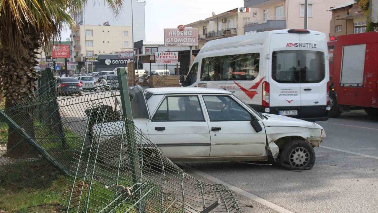 Antalya’nın Serik ilçesinde yoldan çıkan otomobil, orta refüjde bulunan demir korkuluklara çarparak durdu.