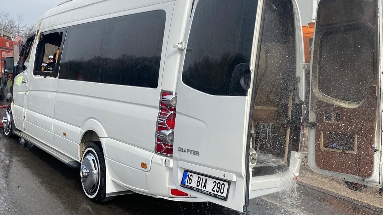 Yavuz YILMAZ/KESTEL (Bursa), (DHA)-BURSA’nın Kestel ilçesinde seyir halinde olan servis minibüsü yandı.
