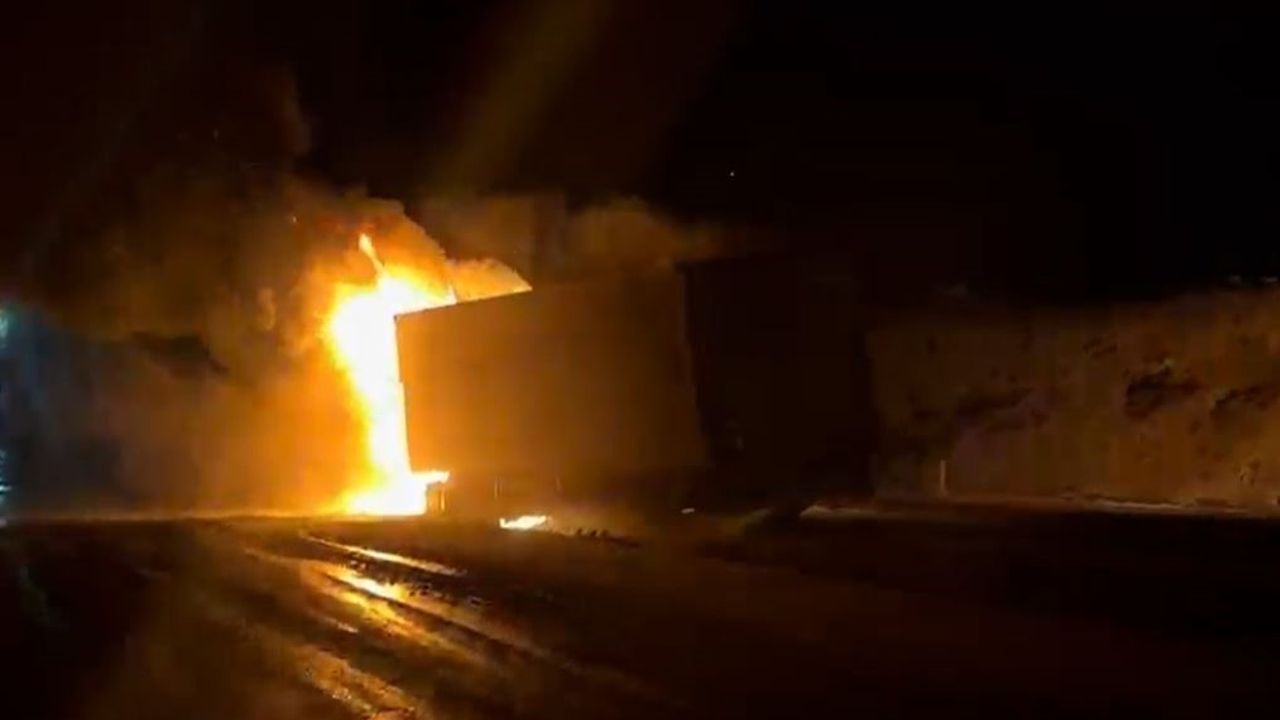 Yangın sonucu tır tamamen kullanılamaz hale gelirken, olayla ilgili inceleme başlatıldı.