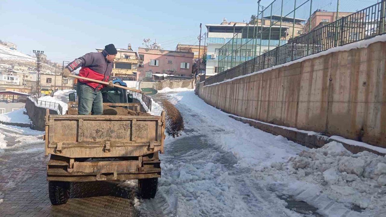 Siirt Belediyesi kent merkezinde karla mücadele çalışmalarını aralıksız sürdürüyor.