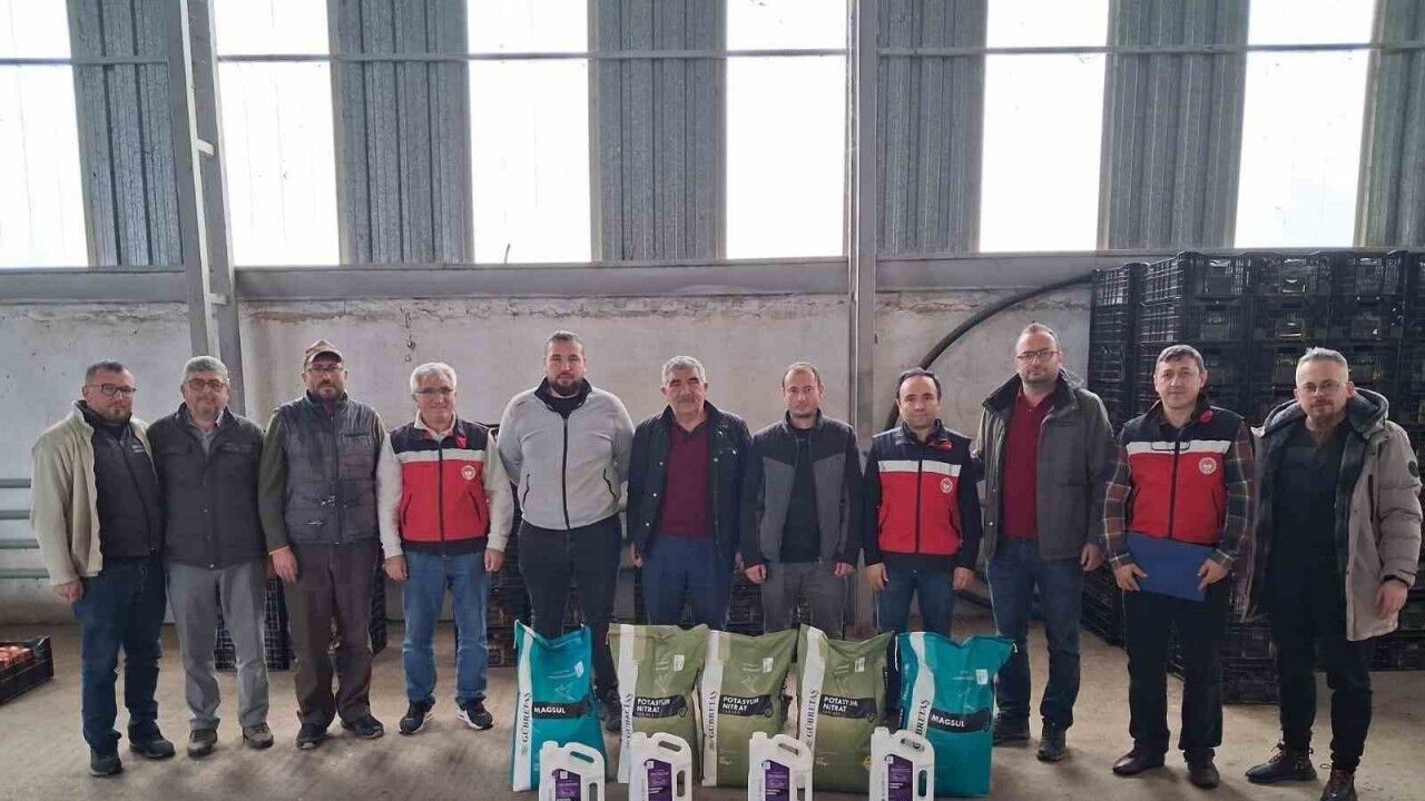 İl Tarım ve Orman Bakanlığının iyi tarım uygulamaları projesine dahil olan 11 sera üreticisine, Bitkisel Üretim Genel Müdürlüğü tarafından sağlanan 2,5 ton gübre destekleri dağıtıldı.