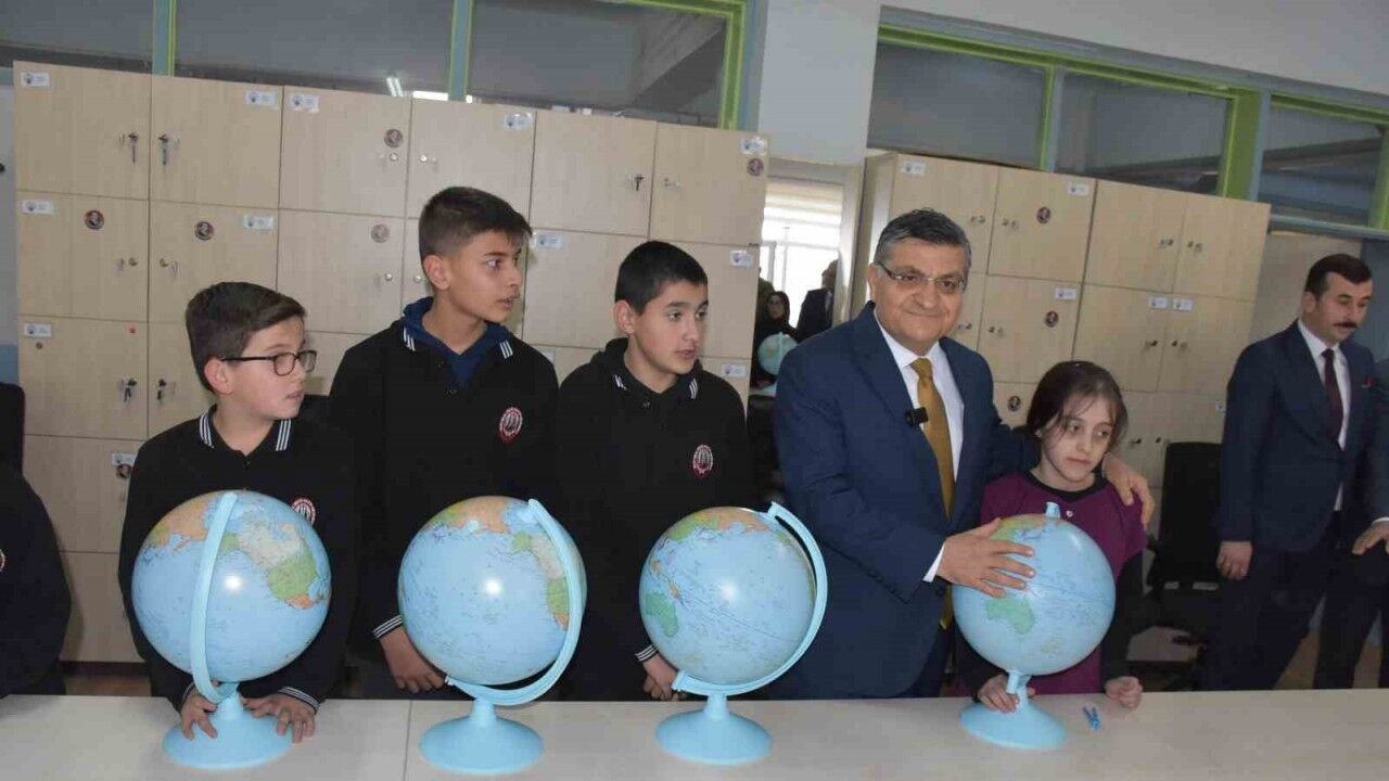 Sinop Valisi Dr. Mustafa Özarslan, Sinop Seyit Bilal İmam Hatip Ortaokulu öğrencilerine ’model küre’ dağıttı.