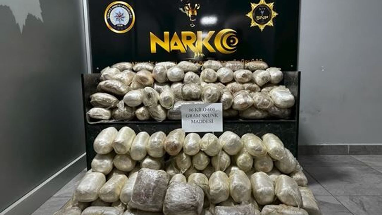 İl Emniyet Müdürlüğü ekipleri tarafından, uyuşturucu ile mücadele kapsamında Köy Hizmetleri Polis Kontrol Noktası'nda, yapay zeka formatında bir yazılım olan Analiz Sistemleri Narkotik Ağı (ASENA) sayesinde durdurulan bir araçta narkotik köpeği ‘Hector’ ile arama yapıldı. Aramada, bagaj kısmına gizlenmiş 119 parça halinde toplam 86 kilo 600 gram skunk ele geçirildi. Şüpheliler M.E., H.K. ve Ş.A. gözaltına alındı. Emniyetteki işlemlerinin ardından adliyeye sevk edilen şüpheliler çıkarıldıkları mahkemede tutuklandı. Şüphelilerin avukat oldukları öğrenildi. (DHA)