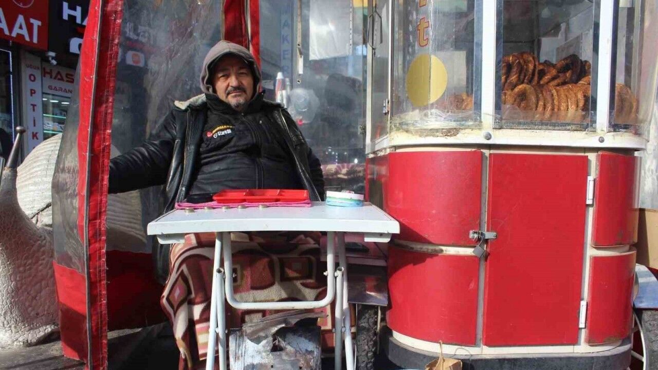 Abdülkadir Erşahinli, "Büyükşehir Belediyesinde simit tezgâhında çalışıyorum. Bu simit tezgahı bizim için sosyal bir proje engelliler için. Başkanımıza teşekkür ediyoruz. Ama daha ayrıntılı bir şekilde mesela ekmek büfesi gibi tezgâhımızı bizlere verirlerse o daha iyi olacak. Şuanda ısınma sorunumuz devam ediyor. Hava şartlarından dolayı yazın ayrı kışın ayrı sıkıntılar çekiyoruz. Biz neticede çalışmak istiyoruz. Engelli olduğumuz için kimseye yük olmadan belediye ye ve devletimize yük olmadan biz çalışmak istiyoruz. Bizde kapalı bir alanda olmalıyız eğer ekmek büfeleri gibi kapalı bir alanda olursak kendi imkânlarımızla da olsa ısınmayı sağlaya biliriz. Buna benzeri bir şey olursa çalışma olarak memnun oluruz. Biz çalışmak istiyoruz neticede, çalışıyoruz da. Biz halkımızla her zaman için iç içeyiz. Biz ısınmayı sağlayamıyoruz. Mesela ben şuan ayaklarımı hissetmiyorum. Ama ben çalışmak zorundayım. Çalışmazsam, emekli veya sosyal yardımlarıyla bir ailenin geçinmesi mümkün değil. Bundan dolayı biz bu tezgâhlarda çalışmak zorundayız. Bu tezgâhları verdikleri içinde teşekkür ediyoruz. Bu tezgâhlar olmazsa biz geçimimizi sağlayamayız. Biz engelliler olarak mesela şuan da yüzde 80, yüzde 90 engelli kardeşlerimizde var. Yani ısınma sorunu başlı başlıca bir sorun bizim için. Korla ısınmaya çalışıyoruz. Kor her zaman gelmiyor. Ancak yine de fırınlarımıza teşekkür ediyorum. Bizi düşünüp yolladıkları için. Bizler engelli olduğumuz için her şeye muhtaç olduğumuz için kendi işimizi kendimiz hallediyoruz. Mesela ailemizin desteği olmadan biz bir şey yapamıyoruz. Sosyal faaliyetlerde yararlanamıyoruz. Bizim için ısınma sorunu büyük bir problem" dedi.