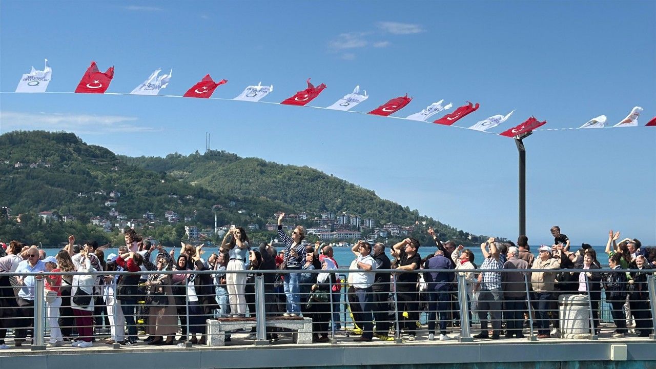Türk Hava Kuvvetleri’ne bağlı SoloTürk, Perşembe ilçesinde bahardan yaza geçişin kutlandığı ‘Mayıs Yedisi’ etkinlikleri kapsamında gösteri uçuşu gerçekleştirdi. SoloTürk’ün Ordu semalarındaki uçuşu, etkinliğe katılanlar tarafından heyecan ve beğeni ile izlendi. Uçuşu izlemek için sahil kesimlerine gelen çok sayıda vatandaş, cep telefonları ile o anları kayıt altına aldı. Yaklaşık 20 dakika süren uçuş, akrobatik hareketlerin ardından tamamlandı. Programa Vali Muammer Erol, Ordu Büyükşehir Belediye Başkanı Mehmet Hilmi Güler, Perşembe Kaymakamı Fatma Turhan Keser, İl Jandarma Komutanı Kıdemli Albay Sadi Akman, Perşembe Belediye Başkanı Cihat Albayrak, protokol üyeleri ve çok sayıda vatandaş katıldı. (DHA)