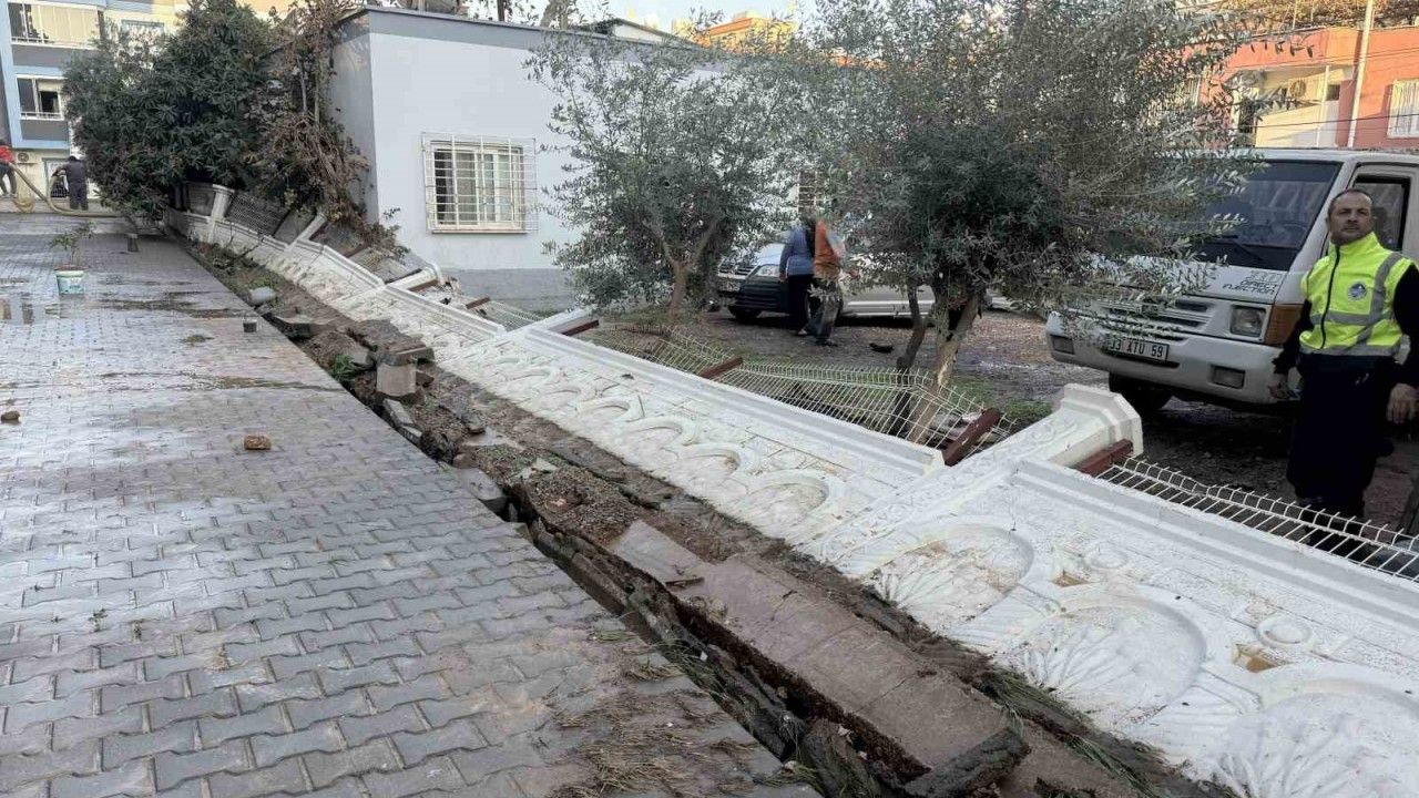 Mersin’in Tarsus ilçesinde dün su borusu patlaması sonucu bazı sitelerin bahçesi suya gömüldü. Sitelerden birinin bahçe duvarının yıkılma anı da cep telefonu kamerasına saniye saniye yansıdı.