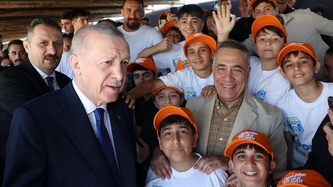 Alanı ziyaret eden Cumhurbaşkanı Recep Tayyip Erdoğan, Sultangazili minik pehlivanlar ile hatıra fotoğrafı çektirdi.