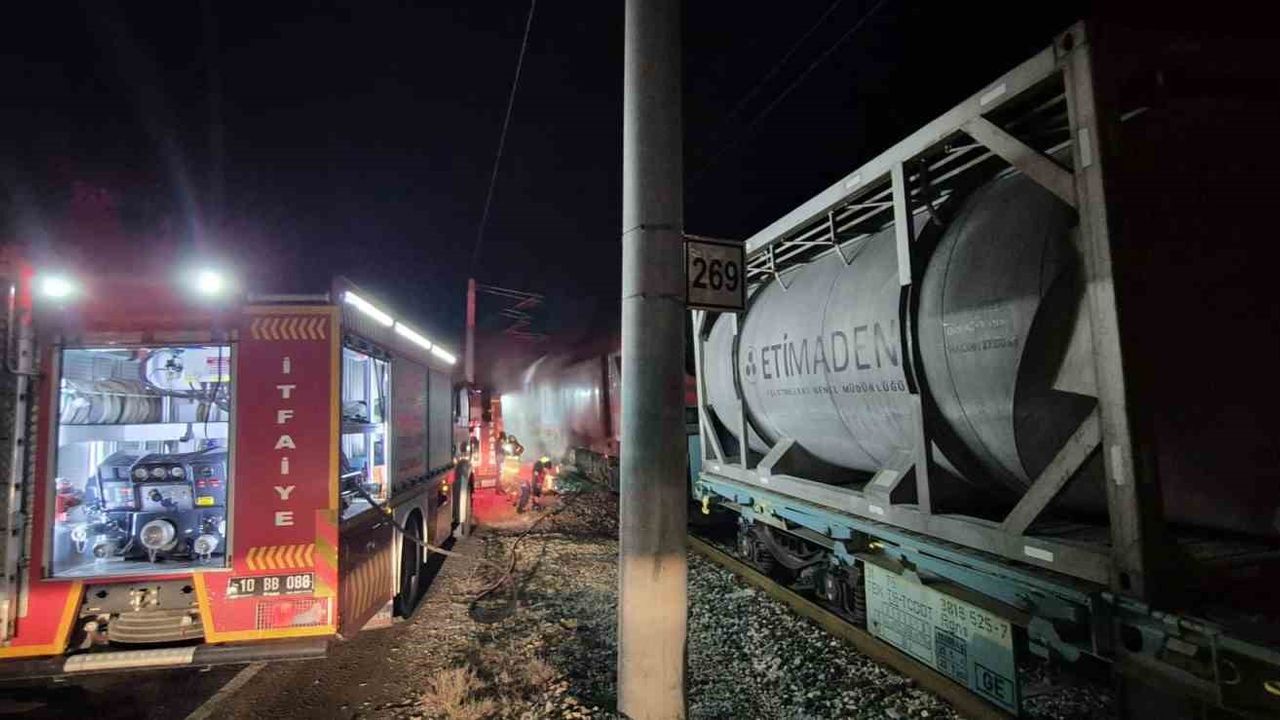 Balıkesir'in Susurluk ilçesinde, Ömerköy-Gökçedere Mahalleleri arasında seyir halinde olan TCDD'ye ait 33376 sefer sayılı Bandırma-Afyon seferini yapan yük treninde yangın çıktı.