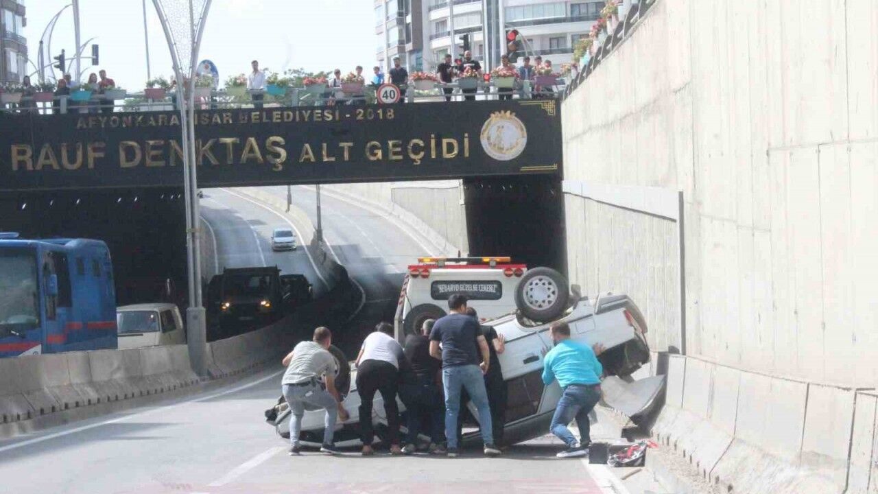 Kaza, kent merkezindeki Rauf Denktaş Alt Geçidi’nde meydana geldi. Edinilen bilgilere göre, A.K., yönetimindeki 03 AD 058 plakalı otomobil sürücüsünün henüz belirlenemeyen bir sebepten ötürü direksiyon hakimiyetini kaybetmesi sonucu kontrolden çıktı. Savrulan araç yol ortasındaki beton bariyerlere çarpıp ardından takla attı. Kazada sürücü ile yanında bulunan Ş.K., isimli şahıs yaralandı. Yaralılar ardından olay yerine gelen 112 Acil servis ambulansları ile Afyonkarahisar Devlet Hastanesine kaldırıldı.