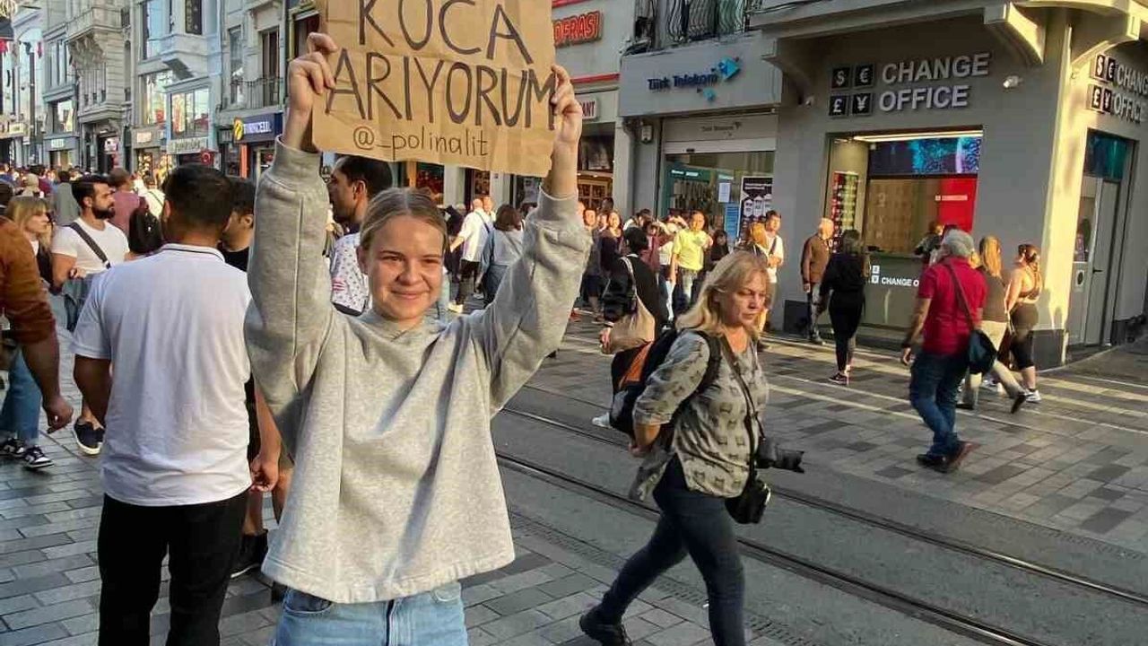 Taksim İstiklal Caddesi’nde dün eşine az rastlanır bir olay meydana geldi. Polina Litvinova isimli 19 yaşındaki Belaruslu genç kız, elinde “Koca arıyorum” ve sosyal medya hesabının kullanıcı adı yazan bir dövizle İstiklal Caddesi’nde dolaştı. Yazıyla dolaştığı videoları kendi sosyal medya hesaplarından paylaşmayı ihmal etmeyen genç kızı gören yerli ve yabancı turistler de şaşkınlıklarını gizleyemedi.