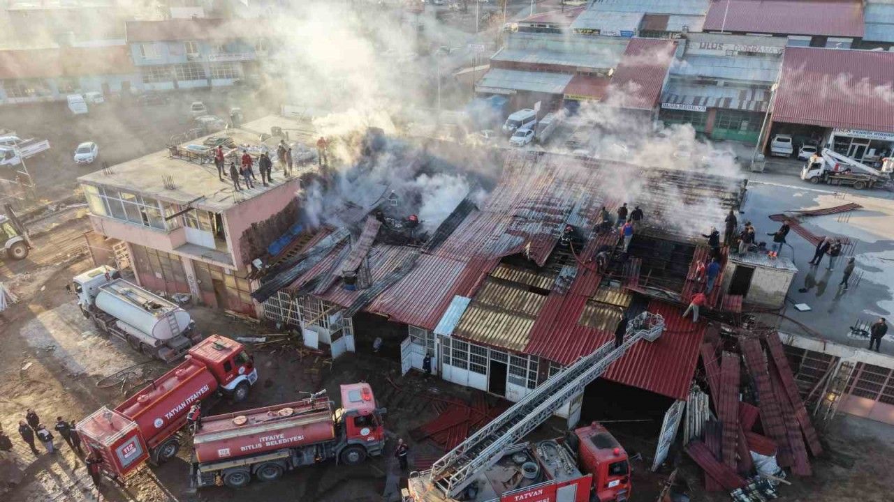 Bitlis’in Tatvan ilçesindeki sanayi sitesindeki bir kereste dükkanında çıkan yangın korkuttu.