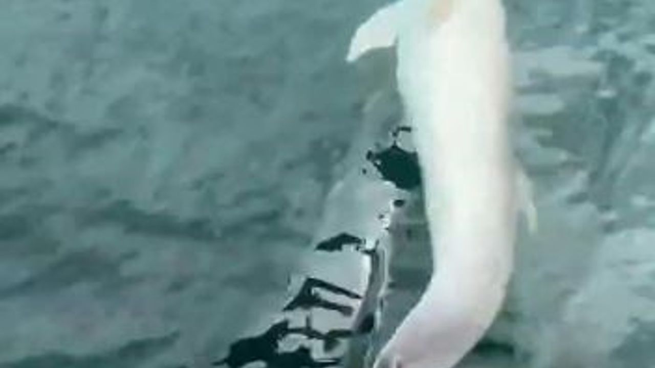 Tekirdağ Süleymanpaşa açıklarında denize açılan bir tekneyi bir süre boyunca takip eden yunus, cep telefonu kamerasıyla görüntülendi.