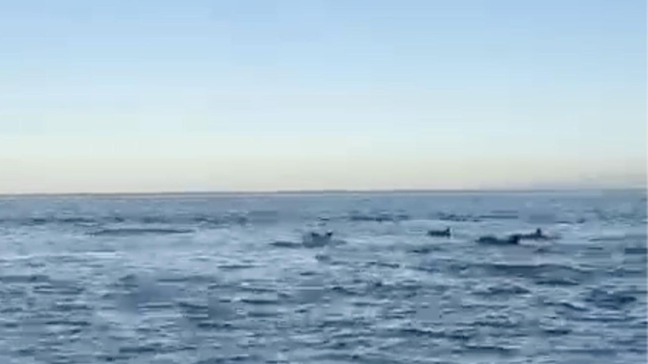 Şarköy ilçesi Gaziköy Mahallesi'nden denize açılan balıkçılar, bir süre teknelerine eşlik eden yunuslarla karşılaştı. Dakikalarca teknenin yanında yüzen ve zaman zaman yarışan yunuslar, balıkçılara keyifli anlar yaşattı. Sürü halinde hareket eden yunusların denize dalıp çıkışı güzel görüntüler oluştururken, o anlar cep telefonu kameralarıyla görüntülendi. Yunuslar bir süre sonra açıklara yüzüp gözden kayboldu. (DHA)
