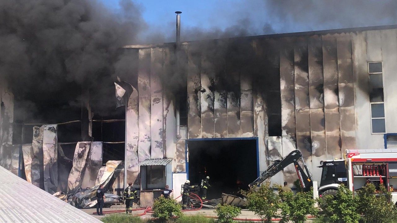 Tekirdağ'ın Çerkezköy ilçesindeki bir kauçuk ve kalıp fabrikasında çıkan yangın, hemen bitişikteki parfüm üretim tesise sıçradı. Alevlerin sardığı tesisten zaman zaman patlama sesleri duyuluyor. Havanın rüzgarlı olduğu bölgede itfaiye ekiplerinin çalışmaları sürüyor. Diğer yandan jandarma ve polis bölgede güvenlik önlemi aldı. (DHA)