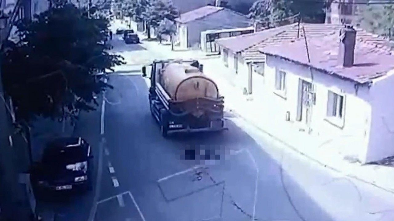Tekirdağ’ın Malkara ilçesinde vidanjörün çarpmasıyla Ayşe Zorlu’nun yaşamını yitirdiği kaza anı, çevredeki güvenlik kamerasına yansıdı. Görüntülerde, yolun karşısına geçmeye çalışan Zorlu’nun vidanjörün çarpmasıyla aracın altında kalarak yaşamını yitirdiği anlar yer aldı. (DHA)