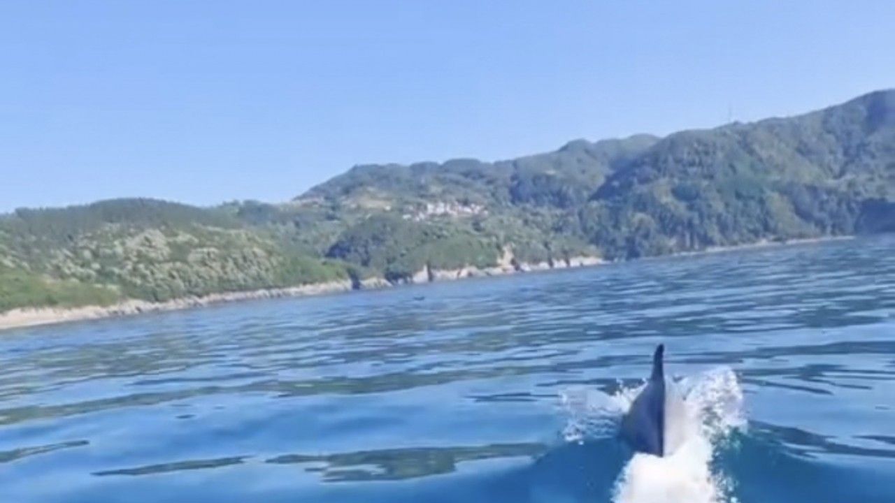Amasra ilçesine bağlı Tavşan Adası mevkisinde, dün akşam saatlerinde zıpkınla balık avlamak için teknesiyle denize açılan Cem Yavuzyiğit, yaklaşık 50 metre açıkta 4 yunusla karşılaştı. Tekneyle yarışır gibi yüzmeye başlayan yunuslar, güzel görüntüler oluşturdu. Yavuzyiğit, yunuslara eliyle ekmek verdi. Bir süre tekne ile suda ilerleyen yunuslar daha sonra gözden kayboldu. Yavuzyiğit, o anları cep telefonu kamerasıyla kaydetti. (DHA)