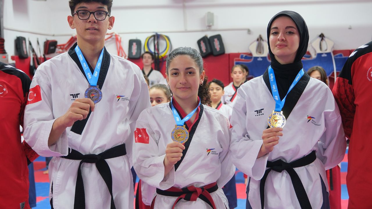 Samsun’un Bafra ilçesinde yaşayan Melek Ahu Çelik, Nursena Gültekin ve Bahadır Türken, 16-17 Nisan 2025 tarihleri arasında Estonya’da düzenlenen Avrupa Poomsae Şampiyonası'ndan büyük başarıyla döndü. 10 yıldır tekvando sporuyla ilgilendiğini söyleyen Nursena Gültekin, “Başladığım ilk günden bu yana İstiklal Marşımızı okutmayı çok istiyordum ve bunu başardığım için çok mutluyum. Avrupa şampiyonasına giderken ailecek hepimiz çok heyecanlıydık. Çünkü yıllardır bu anı bekliyorduk ve İstiklal Marşımızı okutmak bayrağımızı göndere çektirmek çok özel bir anıydı. Bundan sonra ki hedefim Dünya Şampiyonası. İnşallah orada da İstiklal Marşımızı okuturuz” dedi.