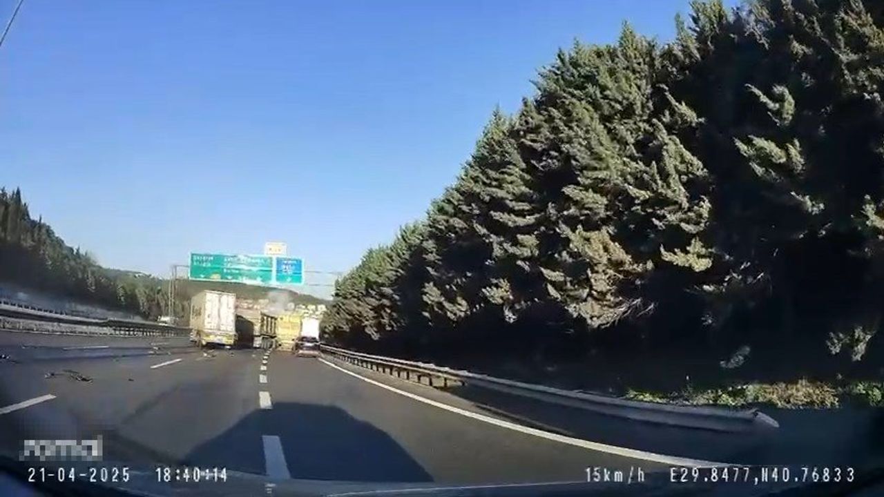 Araçların yoldan kaldırılması için trafik tek şeride düşürülürken, yaklaşık 3 saatlik çalışmanın ardından araçlar yoldan kaldırıldı ve trafik akışı normale döndü. Bu arada kaza anı ise bir aracın araç kamerasına yansıdı. Görüntüde İ.Ö. idaresindeki 06 FAD 328 dorse plakalı TIR’ın sürücüsünün henüz bilinmeyen nedenle aniden orta şeritten sol şeride geçtiği, bu sırada aynı istikamete seyir halinde olan A.G. yönetimindeki 06 FCE 783 çekici plakalı TIR’ın kupasına çarpıp bir süre birlikte sürüklediği anlar yer aldı. Ardından sürüklenen iki TIR’ın sağ şeritte seyir halinde olan H.Ö. idaresindeki 14 ACA 638 plakalı kamyona çarpıp bariyere sıkıştırdıkları anlar araç kamerasınca kaydedildi. (DHA)