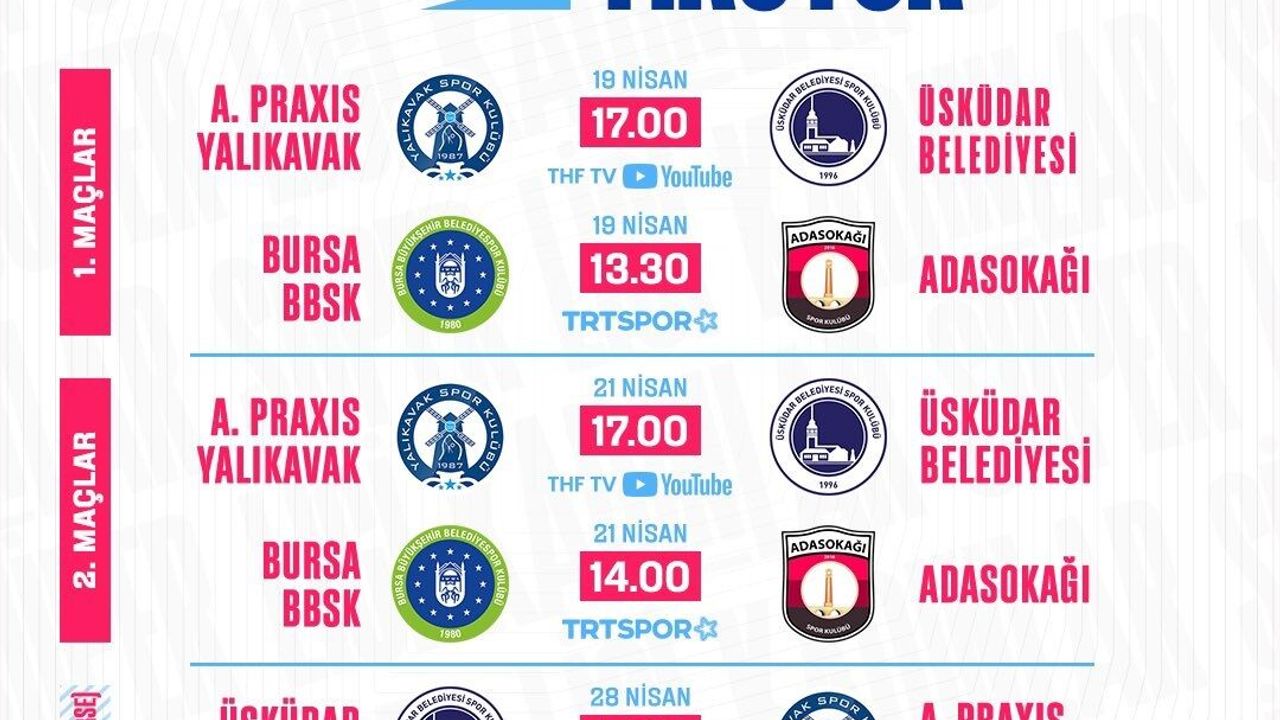 THF Kadınlar Süper Ligi 1-4 Şampiyonluk Etabı maç programı şu şekilde;