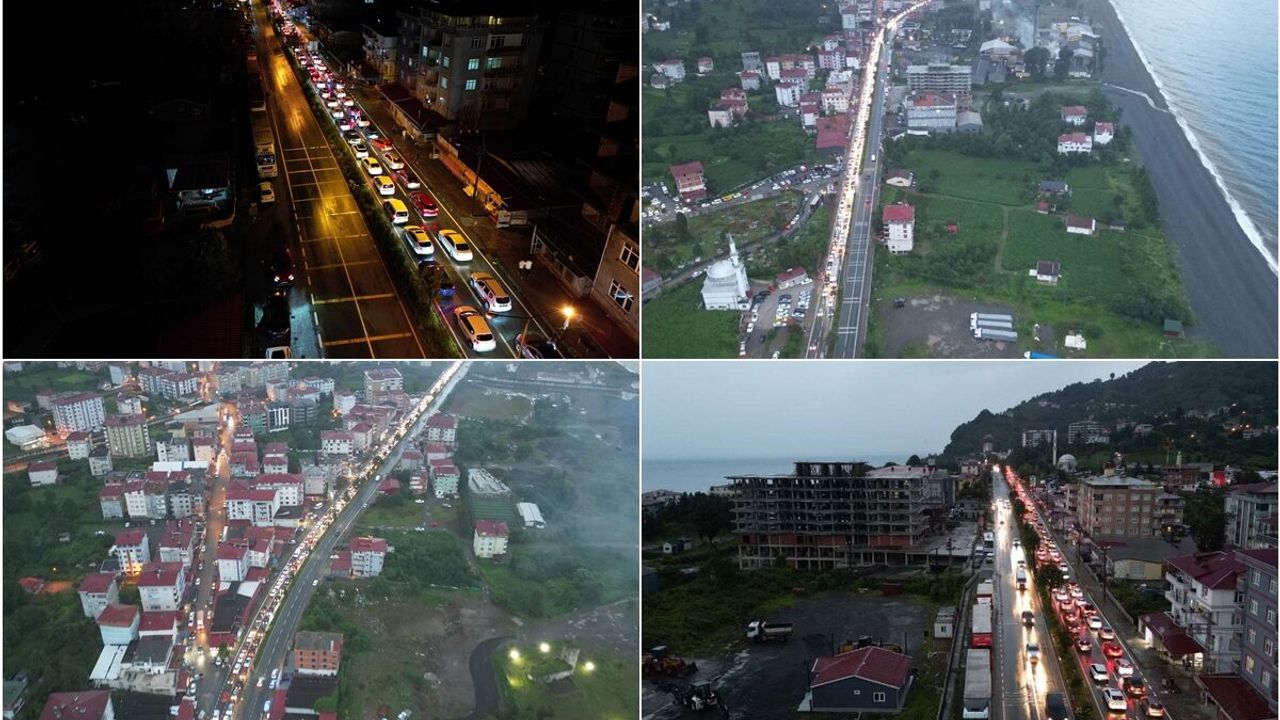 Sarp Sınır Kapısı’nı gün gece yarısı itibariyle 40 bin 960 yolcu kullanırken, 2 bin 410 adet araç giriş ve çıkış yaptı. Sınır kapısındaki yoğunluk bölgede trafiği de olumsuz etkilerken, tır kuyruğunu görmeye alışık olduğumuz bölgede Sarp Sınır Kapısı’ndan Hopa ilçesine 20 kilometrelik araç kuyruğu oluştu. Araç kuyruğu havadan görüntülendi.