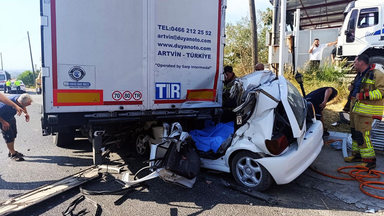 Kaza, dün saat 16.00 sıralarında İzmir-Ankara kara yolu Derbent Mahallesi Maden Yolu Kavşağı yakınlarında meydana geldi. İzmir istikametine giden Enes Karanfil yönetimindeki 35 T 4142 plakalı otomobil, aynı yöne giden Orhan E. (45) yönetimindeki 08 ABA 971 plakalı TIR'a arkadan çarptı. TIR'ın altına giren otomobil demir yığınına dönerken, bölgeye çok sayıda sağlık, itfaiye, polis ve jandarma ekipleri sevk edildi.