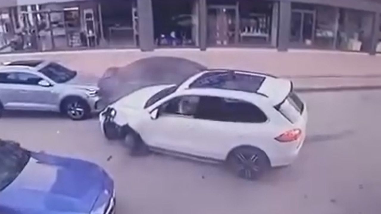 Kaza anı ise güvenlik bir iş yerinin güvenlik kamerasına yansıdı. (DHA)