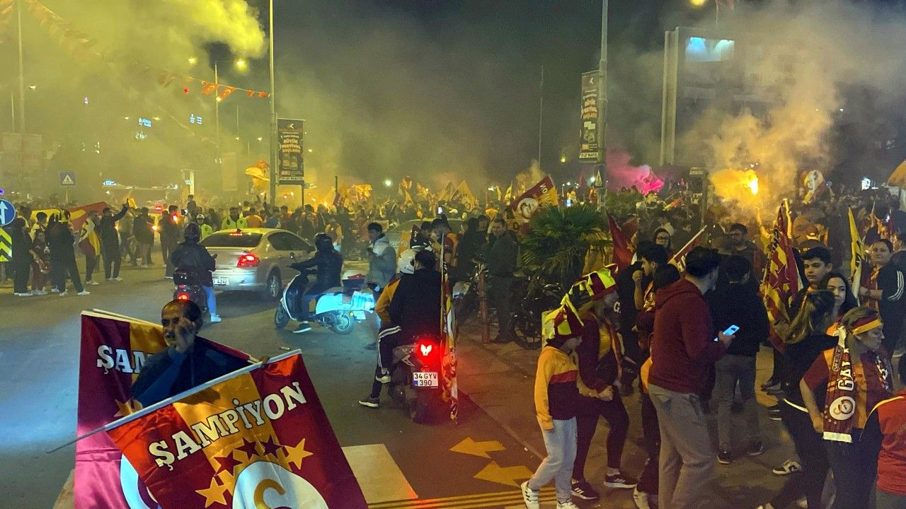 Tekirdağ'ın Çorlu ilçesinde Galatasaray’ın Kayserispor maçının sona ermesinin ardından sarı-kırmızılı taraftarlar Atatürk Meydanı’nda toplandı. Ellerinde sarı-kırmızı bayraklarla birlikte meşaleler yakan taraftarlar, marşlar söyledi. Davul-zurna eşliğinde şampiyonluğu kutlayan Galatasaray taraftarları araçlarıyla kent merkezinde tur attı. Kutlamaların yapıldığı meydanda polis geniş güvenlik önlemi aldı. Tehlikeli araç kullanan sürücüler polis tarafından uyarıldı.