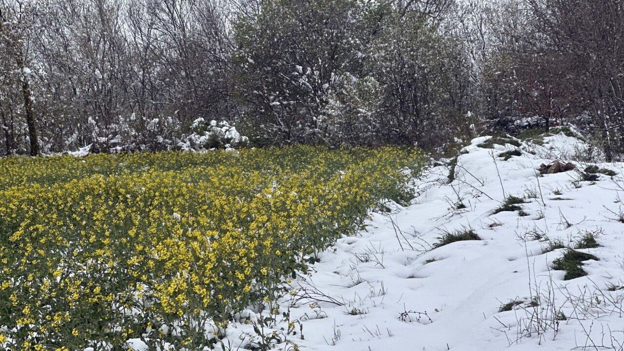 Olgay GÜLER-Umut IŞIK/EDİRNE, (DHA)- TRAKYA'da ayçiçeğine alternatif olan ve çiftçinin 'sarı altın çiçek' olarak adlandırdığı kanola ekilen tarlalar sarıya bürünürken, Edirne'de 22 yıl aradan sonra nisan ayında yağan kar yağışıyla birlikte bölge beyaz örtüyle kaplandı.
