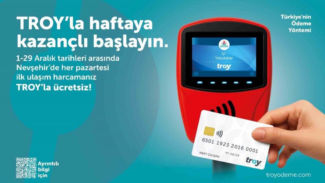 Nevşehir’de TROY kart sahiplerine pazartesi günleri ilk ulaşım ücretsiz olacak.