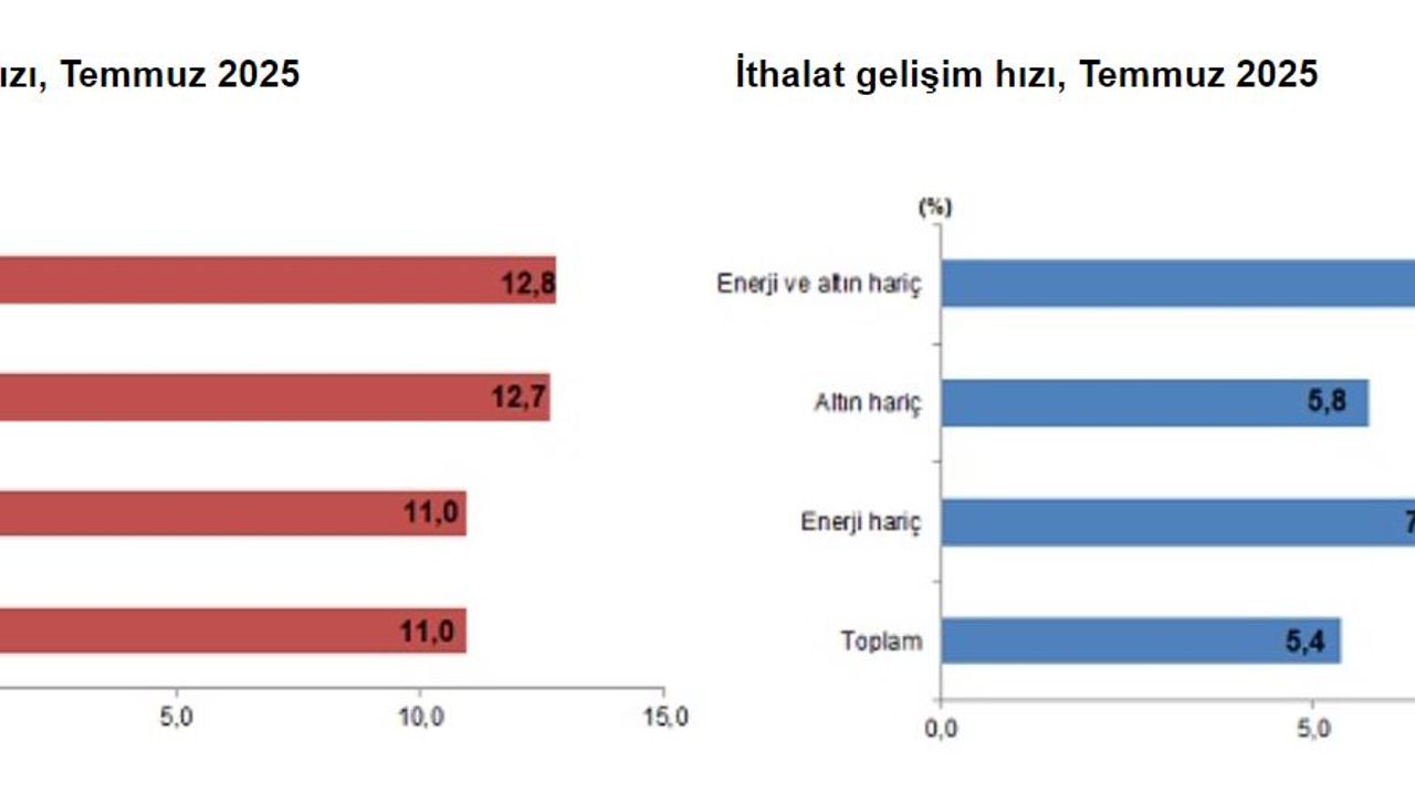 Temmuz ayında dış ticaret açığı bir önceki yılın aynı ayına göre yüzde 11,8 azalarak 7 milyar 305 milyon dolardan 6 milyar 444 milyon dolara geriledi. İhracatın ithalatı karşılama oranı 2024 Temmuz'da yüzde 75,5 iken, 2025 Temmuz'da yüzde 79,5 oldu. Ocak-temmuz döneminde ise dış ticaret açığı yüzde 12,2 artarak 49 milyar 809 milyon dolardan 55 milyar 903 milyon dolara yükseldi. İhracatın ithalatı karşılama oranı 2024 Ocak-Temmuz döneminde yüzde 74,9 iken 2025 yılının aynı döneminde yüzde 73,7'ye geriledi.