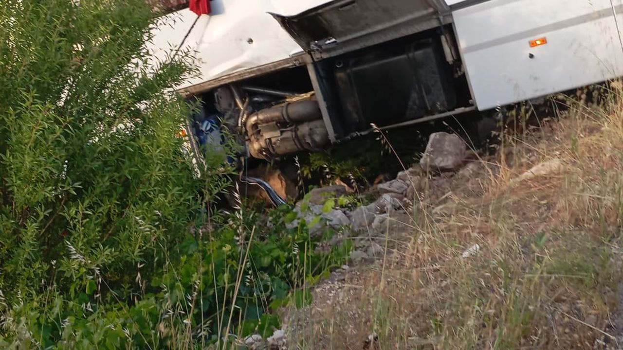 Otobüsün çekiciyle kaldırılması sırasında yol bir süre ulaşıma kapandı.