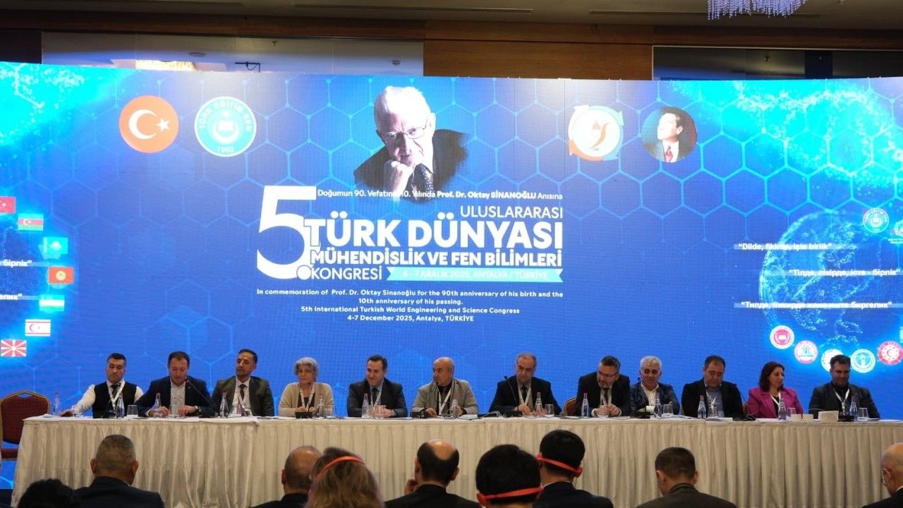 Türk Eğitim Sen ve Uluslararası Avrasya Eğitim Sendikaları Birliği’nce ‘Doğumunun 90. Vefatının 10. Yılında Prof. Dr. Oktay Sinanoğlu Anısına’ düzenlenen 5. Uluslararası Türk Dünyası Mühendislik ve Fen Bilimleri Kongresi, 4-7 Aralık tarihlerinde Antalya’da yapıldı. Kazakistan, Kırgızistan, Özbekistan, Azerbaycan ve Türkmenistan başta olmak üzere; İran, Irak, Suriye, Filistin, Gürcistan, Arnavutluk, Sudan, Somali, Afganistan, Ekvator, Nijerya, Kamerun, Sırbistan, Rusya, Pakistan, Endonezya’dan yüz yüze ve çevrimiçi katılımla toplam 27 ülkeden bilim insanının bir araya geldiği kongrede, 510 bilim insanı 490 bildiri sundu. Birleşmiş Milletler’in (BM) 2025 yılını Uluslararası Kuantum Bilimi ve Teknolojisi Yılı (IYQ) olarak ilan etmesiyle kuantum teknolojisinin 100’üncü yılı kutlanırken, bu çerçevede düzenlenen kongrede kuantum biliminin geçen yüzyıldaki teknolojik ilerlemeye katkıları ele alındı, 21. yüzyılda sürdürülebilir kalkınmaya dikkat çekildi. Kongrenin açılış konuşmasını yapan Türk Eğitim-Sen Genel Başkanı Talip Geylan, Prof. Dr. Oktay Sinanoğlu’nun hatırasını yaşatacaklarını belirtti. Ayrıca geçtiğimiz günlerde Ankara’da lise öğrencilerinin bir öğretmene yaptığı saygısızca davranışların da kabul edilemez olduğunu vurguladı.