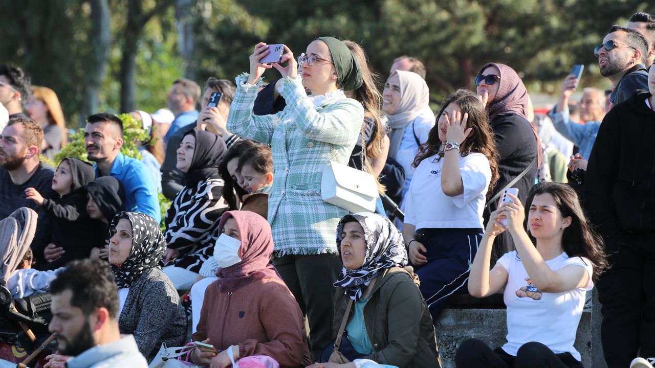 Samsun semalarında yaklaşık 1 saat gösteri uçuşu gerçekleştiren Solo Türk ve Türk Yıldızları’nın gösterilerini kentin farklı bölgelerinde heyecanla takip edenler, cep telefonlarıyla da bu anı ölümsüzleştirdi. (DHA)