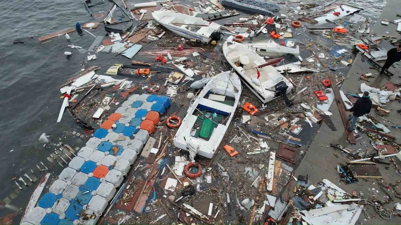 Şiddetli dalgalar nedeniyle bazı tekneler alabora olurken, bazıları parçalanarak kullanılamaz hale geldi, bazı teknelerin ise battığı öğrenildi. Sahil boyunca teknelerin birbirine çarptığı, bağlama halatlarının koptuğu ve iskelelerde hasar oluştuğu görüldü.