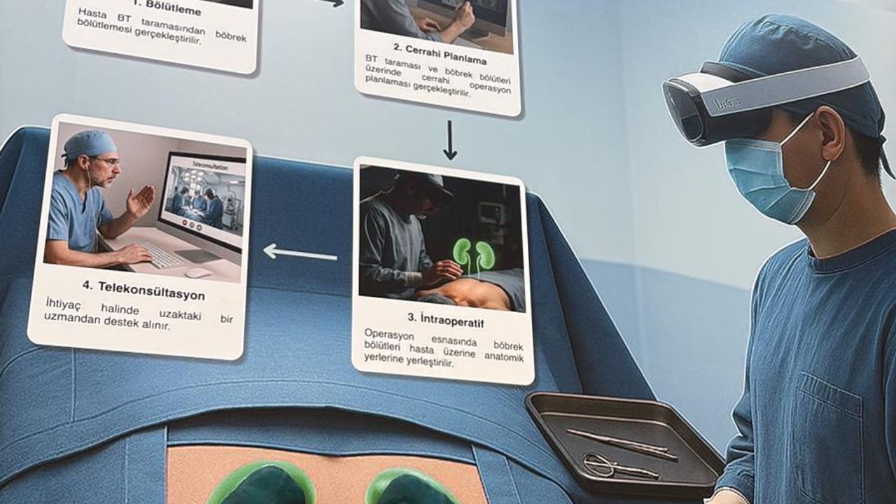 Projenin 3 aşamadan oluştuğunu söyleyen Yaşartürk, "İlk aşamada bilgisayarlı tomografi görüntülerini cerrahımız operasyondan önce planlama uygulamamıza yüklüyor. Bu planlama uygulamamızda, örnek verelim böbrek ameliyatında, böbrek ya da böbreklerin vücuttan açık ameliyat yöntemi ile çıkarılması işleminde böbrek üzerindeki kistleri bölümlere ayırıyoruz. Cerrah bu işlem için nereden girebilir, neler yapması gerekir planlamasını gerçekleştiriyor. Ardından bu aşamadan sonra arttırılmış gerçeklik gözlüğü üzerine biz bu verilerimizi gönderiyoruz. Bu sayede cerrahlara nasıl bir yol izlemeleri gerektiğine dair rehberlik sağlamayı amaçlıyoruz. İkinci aşamada, bu planlama verilerini artırılmış gerçeklik gözlüğüne aktarıyoruz. Operasyon sırasında hastanın üzerine yerleştirdiğimiz özel maddeler sayesinde, segmente ettiğimiz görüntüleri hastanın vücudu üzerine birebir yansıtıyoruz. Yani hastanın o anki anatomik konumları ile bizim hazırladığımız segmentasyon görüntüleri gerçek dünya üzerinde eşleşiyor. Üçüncü aşamada ise telekonsültasyon devreye giriyor. Eğer cerrah bir meslektaşından yardım almak ya da fikir danışmak isterse, dünyanın neresinde olursa olsun diğer cerrah aynı anda birebir aynı görüntüyü görebiliyor. Bu şekilde ikinci bir görüş alma imkanı doğuyor, yardım isteyebiliyor, fikir alışverişinde bulunabiliyor" diye konuştu.