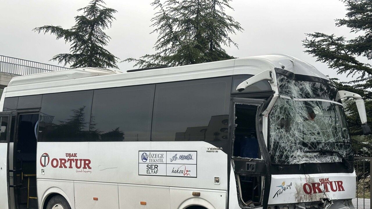 İnan YAMAN/UŞAK, (DHA)-UŞAK'ta fabrikaya işçi taşıyan midibüs ile servis otobüsünün çarpıştığı kazada, 20 kişi yaralandı.