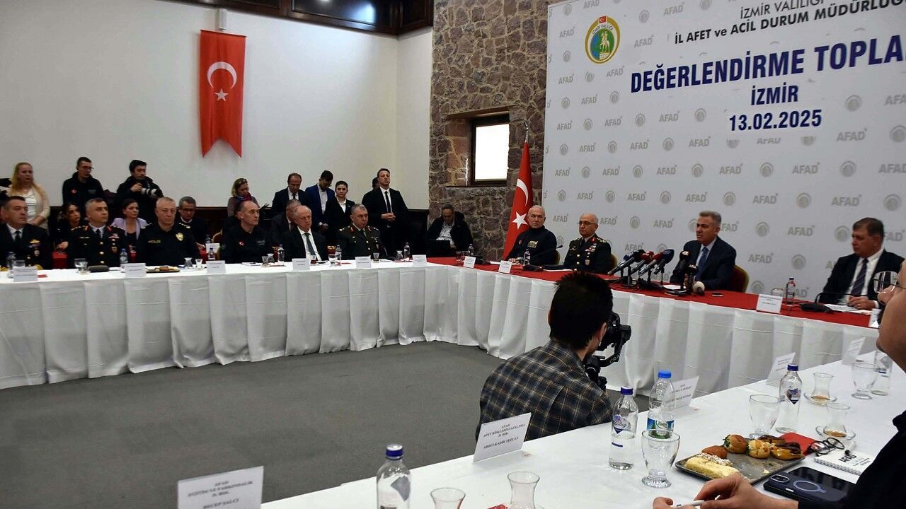 Toplantının ardından konuya ilişkin basın mensuplarına açıklamalarda bulunan Vali Süleyman Elban, 28 Ocak'tan bu yana Ege Denizi'nde Santorini Adası civarında özellikle adanın kuzeydoğu bölümünde yoğunlaşmış bir şekilde deprem fırtınasının devam ettiğini belirtip, "Bu devam eden fırtınada 5.2'yi geçmemek üzere bugün itibarıyla 2 bin 200'e yakın deprem kaydedildi. Bu depremlerin Ege Denizi'nde ve kıyılarımızda oluşabilecek bir etkisi ya da vatandaşımızı etkilemesi gibi herhangi bir durum ve bunlarla ilgili yapılacak şeylerle ilgili değerlendirme toplantısı yaptık. AFAD Başkanlığımızdan kıymetli genel müdürlerimiz, AFAD Bilim Kurulu üyeleri, Kandilli Rasathanesi'nden, ilimizin ve ülkemizin kıymetli üniversitelerinden bilim insanlarıyla değerlendirme yaptık. Santorini civarında oluşacak bir depremin volkanik patlamanın ya da oluşacak bir tsunaminin ülkemiz kıyılarına, İzmir kıyılarına etkileri konusu değerlendirildi. Bu etkilerden sonra oluşacak duruma göre alınacak tedbirleri değerlendirdik" dedi.