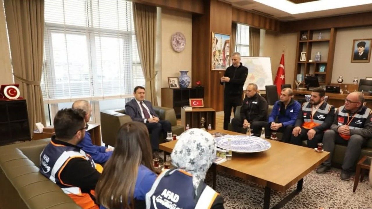 Kütahya İl Afet ve Acil Durum Müdürü İsmail Özkan, Destek AFAD gönüllüleri ve AFAD personeliyle birlikte Kütahya Valisi Musa Işın’ı makamında ziyaret etti.
