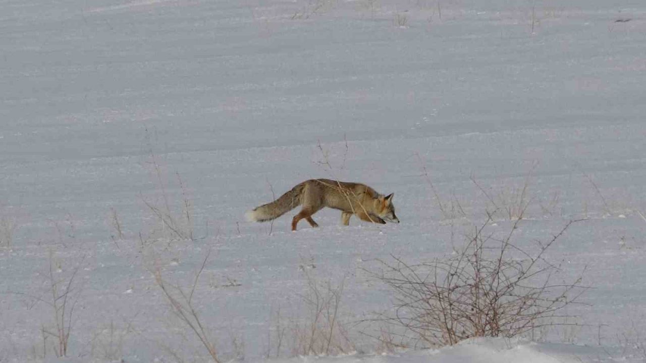 Van'da etkili olan yoğun kar yağışı, doğada ilginç ve dikkat çekici anlara sahne oldu. Kırsal alanlarda yiyecek bulmakta zorlanan tilkilerin karla kaplı arazideki fare avı belgeselleri aratmıyor.
