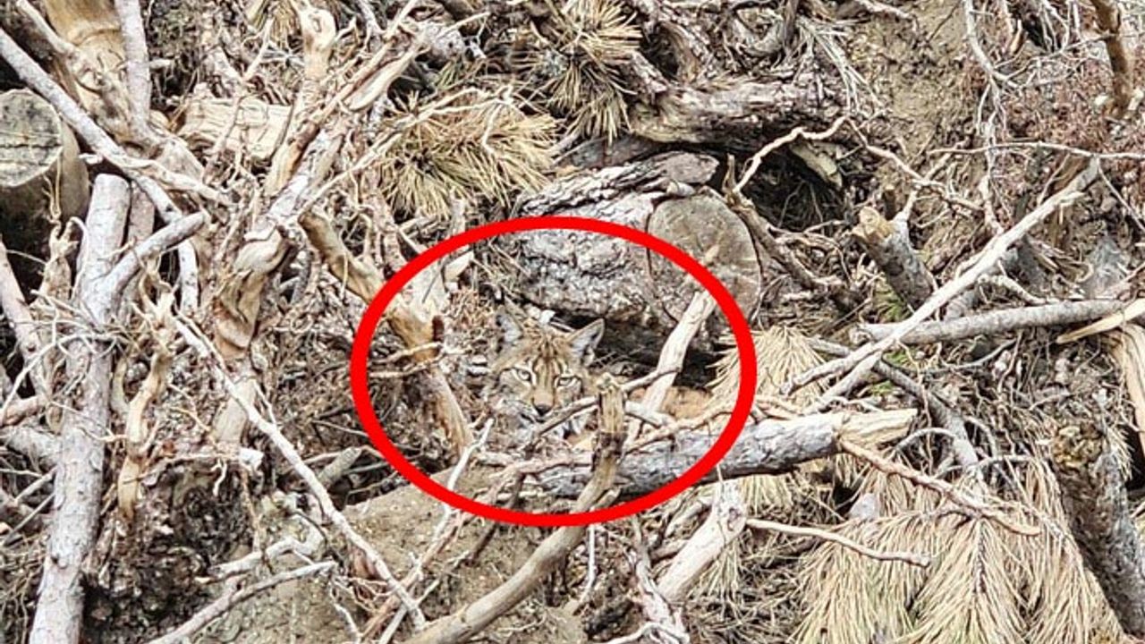 Oğuzhan EKE/GÖYNÜK (Bolu), (DHA)- BOLU’da, ormanda kesim sonrası yığılan ağaç dallarının arasında gizlenen vaşak ve yavruları görüntülendi. Dalların arasında kamufle olan vaşak ailesi doğal ortamında koruma altına alındı.