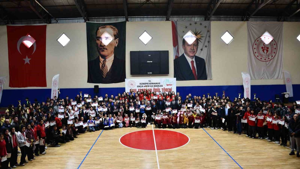 Samsun'un Vezirköprü ilçesinde okul sporları kapsamında yapılan müsabakalarda dereceye giren öğrenciler, düzenlenen törenle ödüllerine kavuştu.