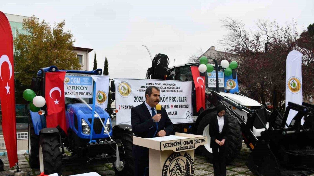 Vezirköprü Orman İşletme Müdürü Mecit Koçak yaptığı konuşmada, "ORKÖY kredili ve yüzde 20 hibeli iş makinesi, traktör, tambur ve süt sığırcılığı kapsamında 28 adet inek dağıttık" dedi.