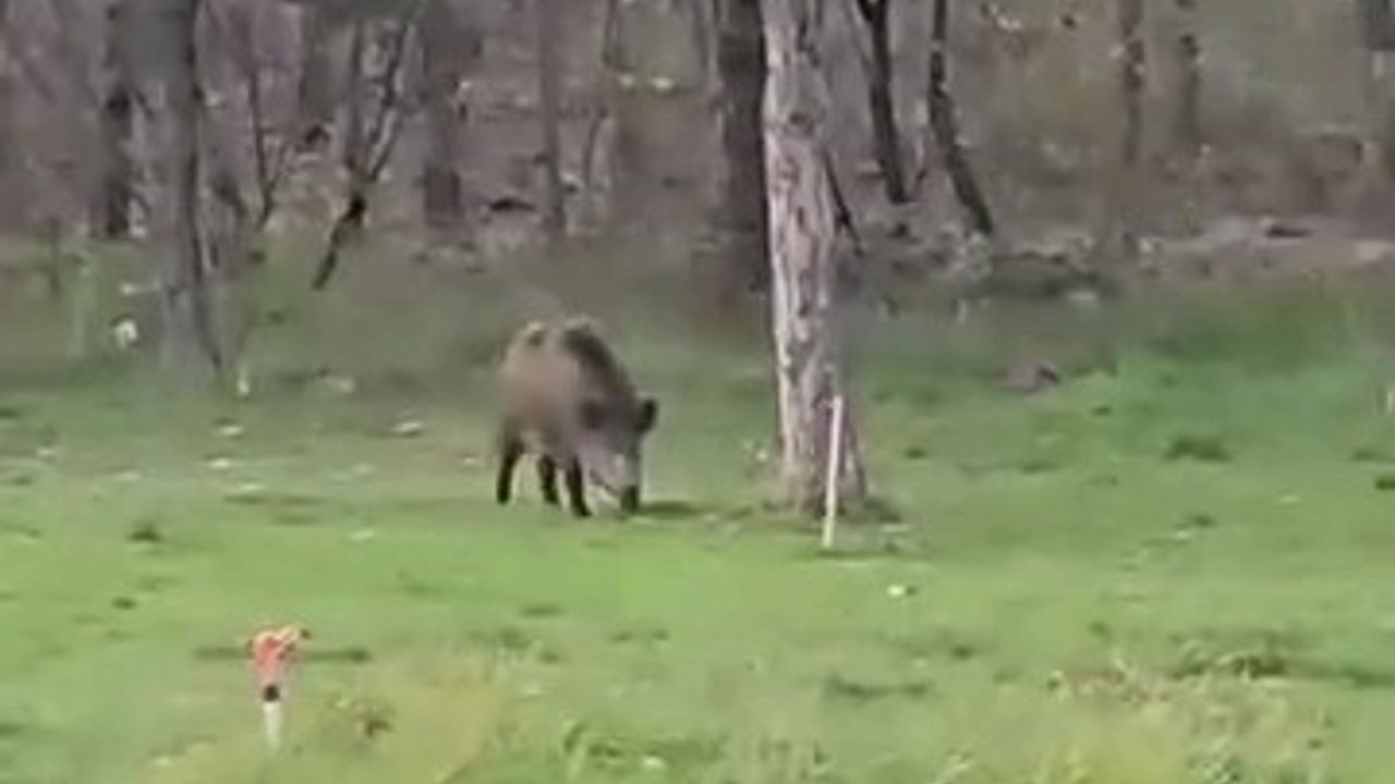 Edirne’de Trakya Üniversitesi Balkan Yerleşkesi çevresinde görüntülenen bir yaban domuzu, öğrenciler arasında esprili yorumlara sebep oldu.