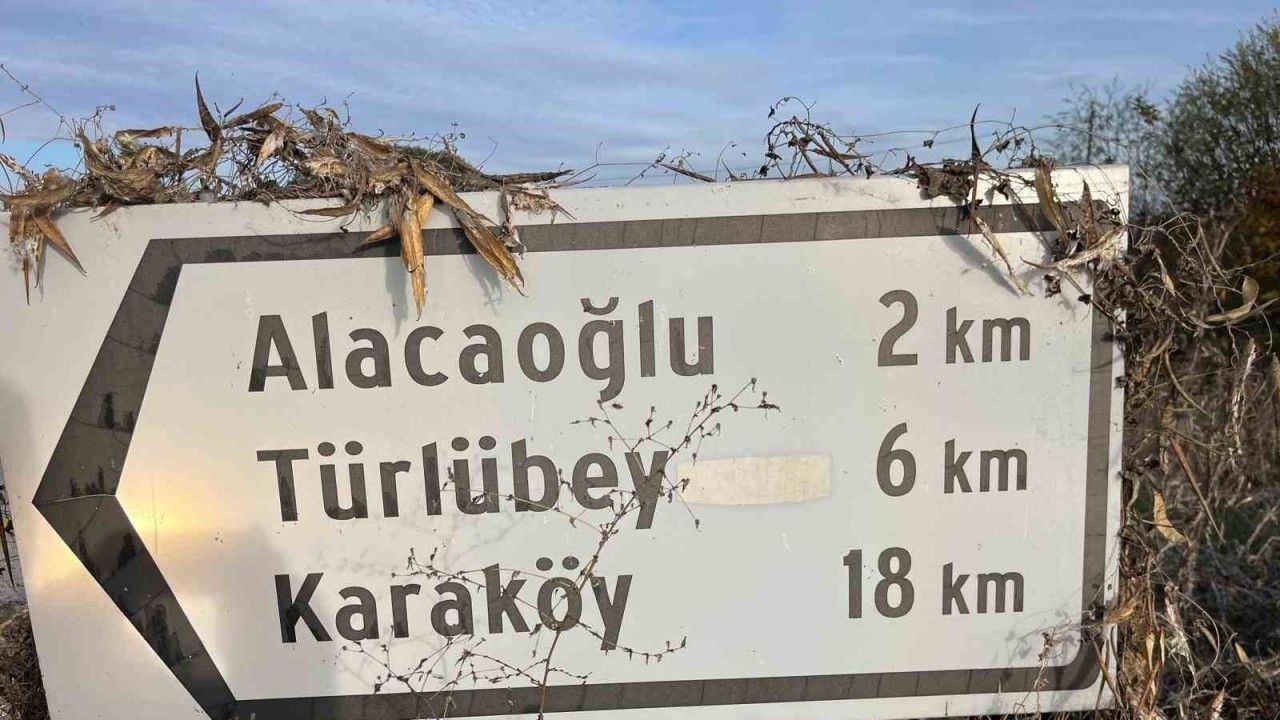 Alacaoğlu kavşağından epey bir mesafe gidilmesine rağmen kilometrenin daha da azalacağına arttığına dikkat çeken sürücüler, "İki levhada garip bir durum var. Kavşaktan 6, yola girilince 8 kilometre. Alacaoğlu mahallesine girişteki tabelada ise 7 kilometre yazılı. Hangisi doğru hangisi yanlış anlamış değiliz" diyor.