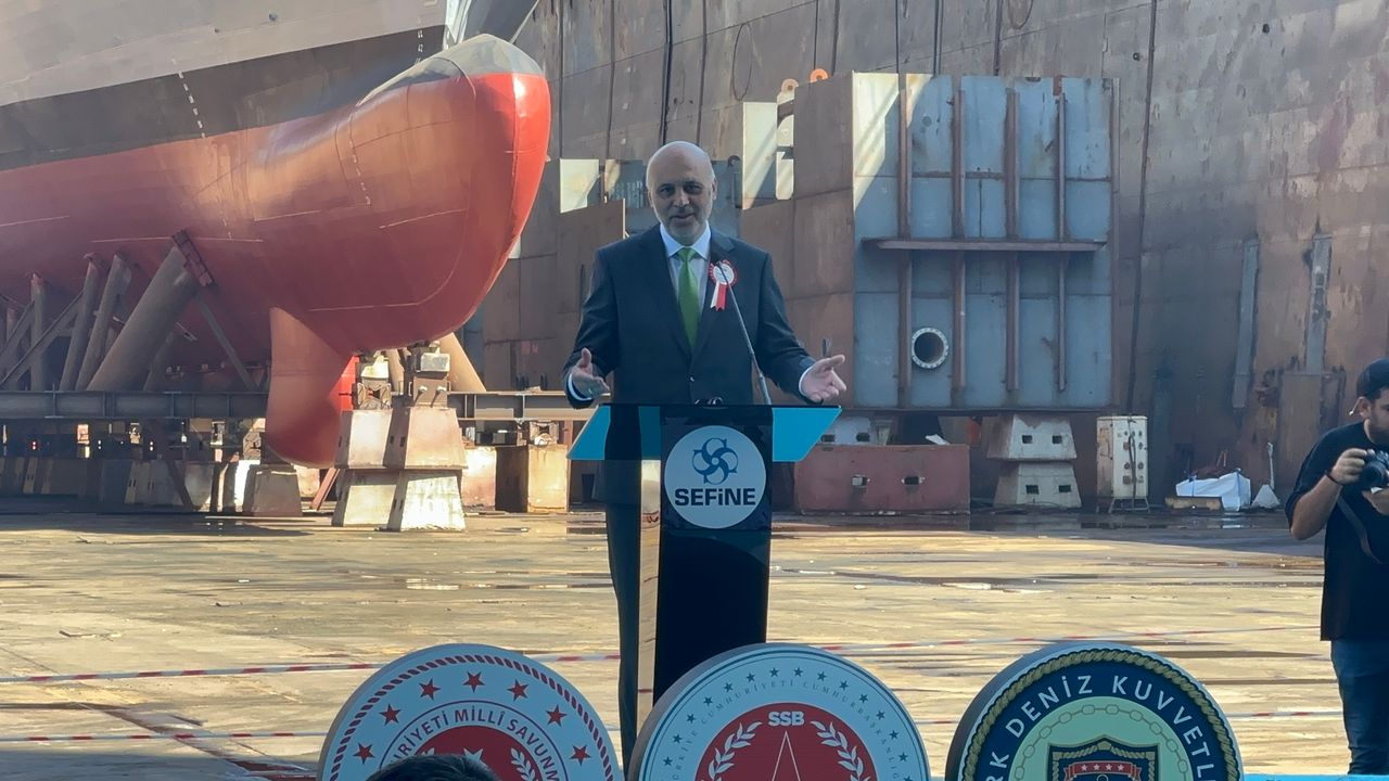 Tüm tersanelerde şu anda 30'un üzerinde askeri gemi inşa edildiğini söyleyen Savunma Sanayi Başkanlığı Sistem ve Platform Başkan Yardımcısı Mustafa Murat Şeker, "Son zamanlarda gördüğümüz bütün savaşlar, çatışmalar hep bizim coğrafyamızda bizim çevremizde oluyor. Dolayısıyla bizlerin de savunma sanayisinde bu zorluklara karşı kendimizi geliştirmemiz, yeni ürünler geliştirmemiz savunma sanayisini desteklememiz gerekiyor. Biz de Savunma Sanayi Başkanlığı olarak bu doğrultuda tüm alanlarda olduğu gibi özellikle mavi vatan için Deniz Kuvvetleri'mizin ihtiyaç duyduğu tüm platformları da son zamanlarda yoğun bir şekilde hayata geçiriyoruz. Bunları Deniz Kuvvetleri'mize teslim etmek için gayret sarf ediyoruz. Belki de dünyada sayılı ülkelerin yapabileceği bir şeyi şu anda yapıyoruz" ifadelerini kullandı.