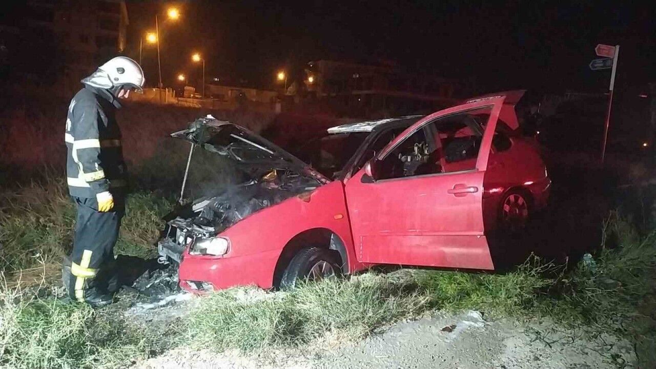 Çorum’da kontrolden çıkan otomobil kaldırıma çarparak boş araziye girdi. Kaza sonrası otomobil alev alırken, son anda kurtulan sürücü ise yaralandı.