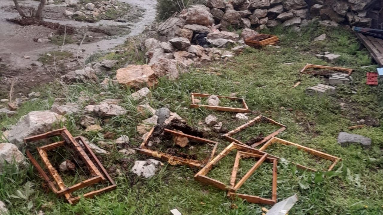 Develi ilçesi Şıhlı Mahallesi'nde bal üreticiliği yapan Sümeyye Ardıçoğlu, babası Kemal Ardıçoğlu ile arı kovanlarını kontrol etmek için yaylaya gitti. Ardıçoğlu, 30 arı kovanından yaklaşık 20’sinin ayı tarafından parçalandığını gördü. Olayın ardından akşam saatlerinde araçla mahalleye gidenler tarafından bir ayının kaçtığı anlar cep telefonuyla görüntülendi. Görüntülerde, ayının araçtan kaçtığı ve bir süre sonra gözden kaybolduğu görüldü. (DHA)
