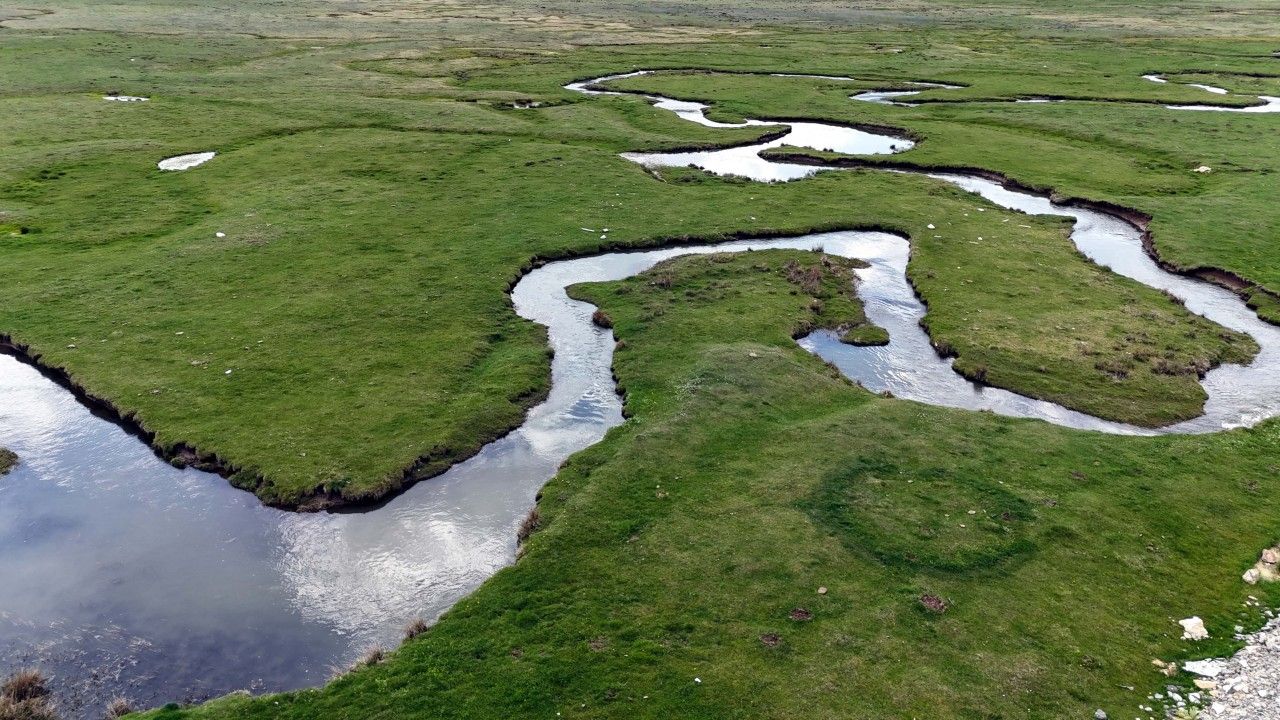 Murat KÜÇÜK- Mutlu YUCA/BOLU, (DHA)- BOLU’da Köroğlu Dağları'nın eteklerinde bulunan yüzlerce dönüm meraların bulunduğu Sarıalan Yaylası'nda eriyen kar suları ve yağmurla birlikte suyla dolarak yeşilliklerin arasından süzülen menderesler eşsiz manzara oluşturdu.